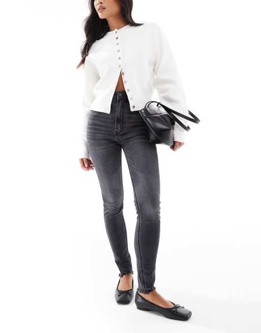 Stradivarius Petite – Supereng geschnittene Skinny-Jeans in verwaschenem Schwarz