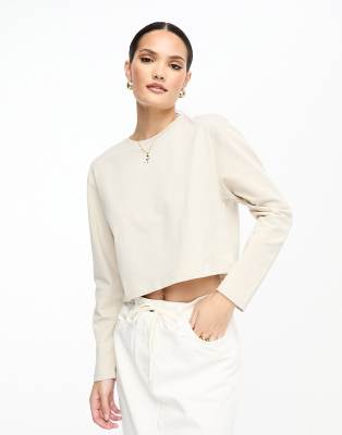 Stradivarius – Premium – Langärmliges Oberteil in Hellbeige