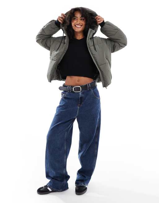 Stradivarius – Puffer-Kurzmantel in Salbeigrün