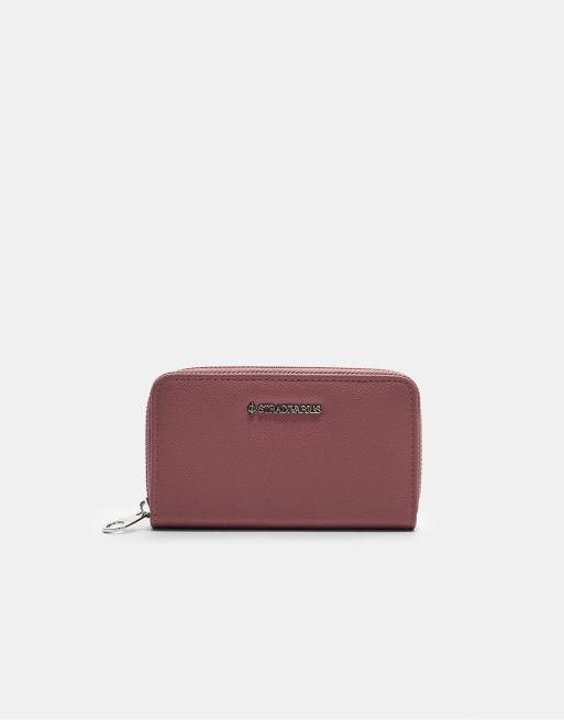 Stradivarius – Rechteckige Geldbörse in Burgunderrot mit Reißverschluss