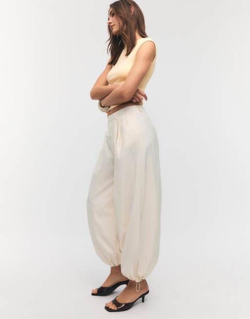 Stradivarius – Sarouel-Hose aus Funktionsmaterial in Ecru mit Abnähern