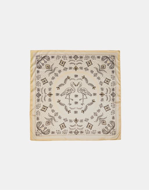 Stradivarius – Schal in Ecru mit Flamingo- und Paisleymuster