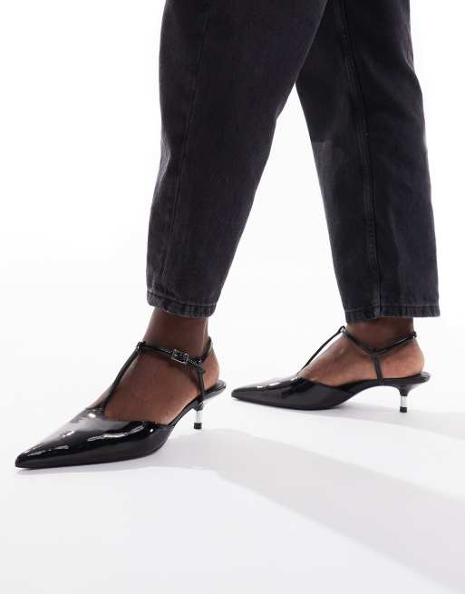 Stradivarius – Schuhe in Schwarz mit T-Steg und Kitten-Heel-Absatz