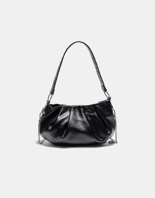 Stradivarius – Schultertasche in Schwarz mit Falten- und Riemendetail