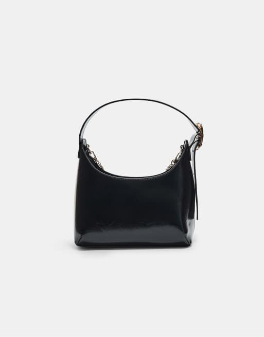 Stradivarius – Schultertasche in Schwarz mit Schnallendetail