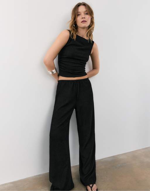 Stradivarius – Schwarzes Set mit Knittereffekt