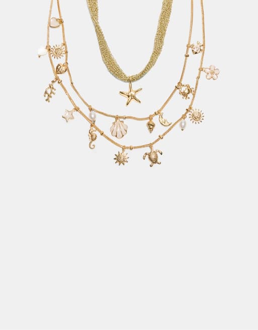 Stradivarius – Set mit 2 Halsketten mit maritimen Anhängern in Goldoptik