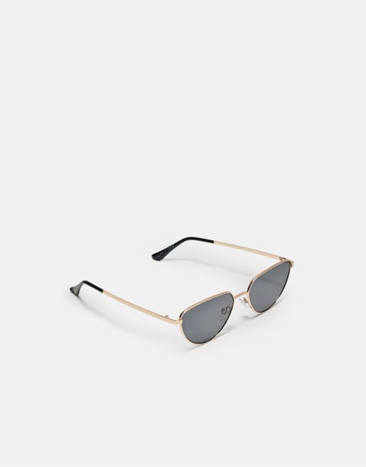 Stradivarius – Sonnenbrille in Blau mit gerader Oberseite und Metallrahmen