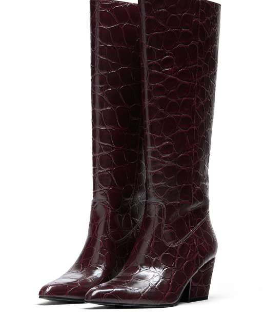 Stradivarius – Stiefel in Burgunderrot mit hohem Absatz