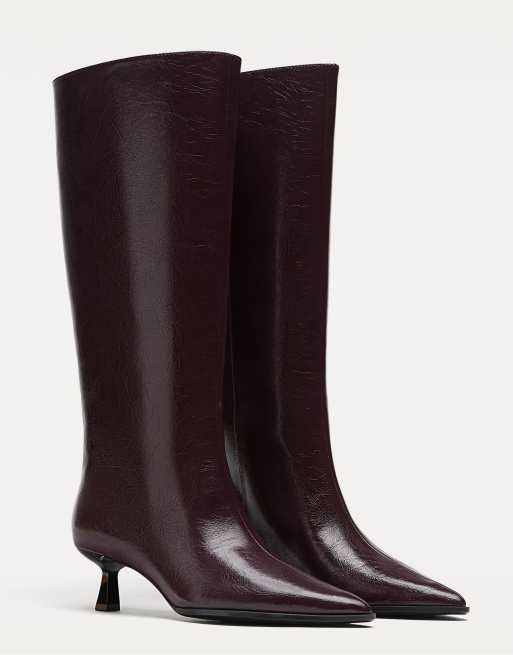 Stradivarius – Stiefeletten in Burgunderrot mit Kitten-Absatz