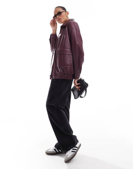 Stradivarius – STR – Bomberjacke aus Kunstleder in Ochsenblutrot