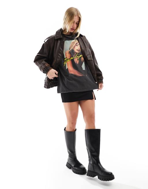 Stradivarius – STR – Dua Lipa – T-Shirt in Schwarz