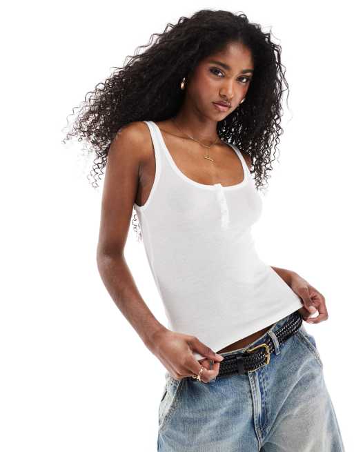 Stradivarius – STR – Trägertop in Weiß mit Knopfleiste
