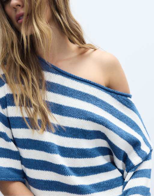 Stradivarius – Strickpullover in Königsblau mit U-Boot-Ausschnitt