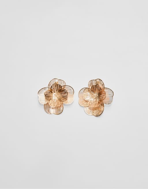 Stradivarius – Strukturierte Ohrringe in Goldoptik mit Blumen-Design