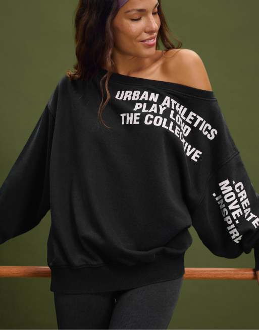 Stradivarius – Sweatshirt in Dunkelgrau mit Print und verblasstem Effekt