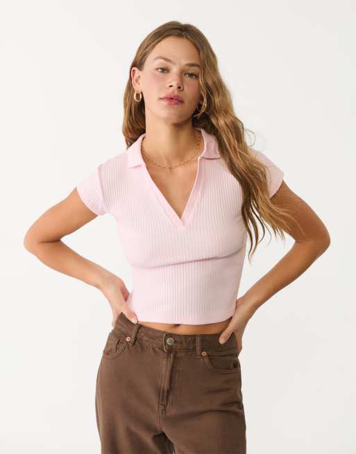 Stradivarius – T-Shirt in Rosa mit Polokragen