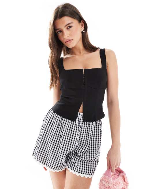 Stradivarius – Trägertop in Schwarz mit eckigem Ausschnitt