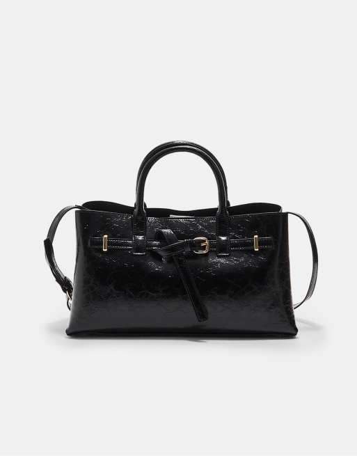 Stradivarius – Tragetasche in Schwarz mit Gürteldetail