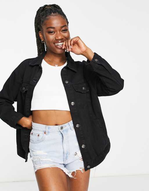 Stradivarius – Übergroße Jeansjacke in verwaschenem Schwarz