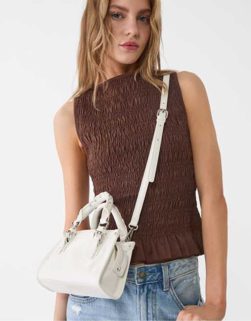 Stradivarius – Umhängetasche in Weiß mit geflochtenen Henkeln