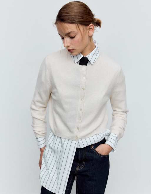 Stradivarius – Weiche Strickjacke in Steinbeige mit Knopfleiste