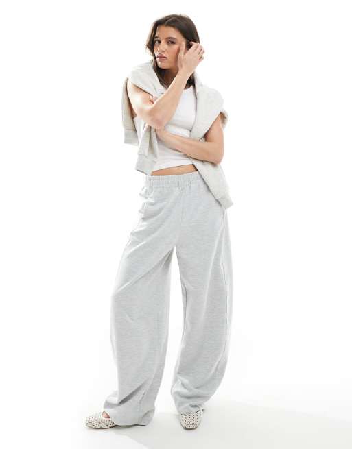 Stradivarius – Weite, flauschige Hose in Grau meliert