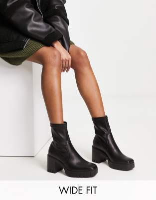 Stradivarius Wide Fit – Absatzstiefel in Schwarz mit dicker Sohle