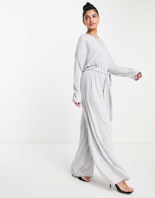Style Cheat – Jumpsuit in Grau mit Taillenschnürung und weitem Bein