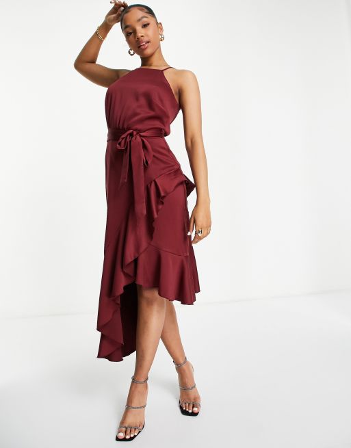 Style Cheat – Neckholder-Midikleid in Pflaume mit Rüschen