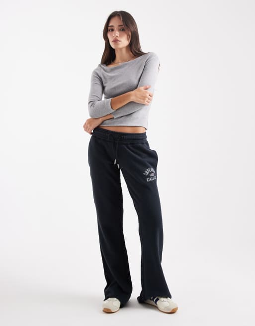 Superdry – Athletic – Ausgestellte Jogginghose in Eclipse Navy mit Print