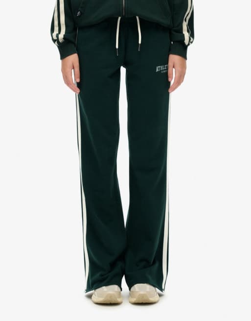Superdry – Athletic – Ausgestellte Jogginghose in Emaille-Grün mit Streifen