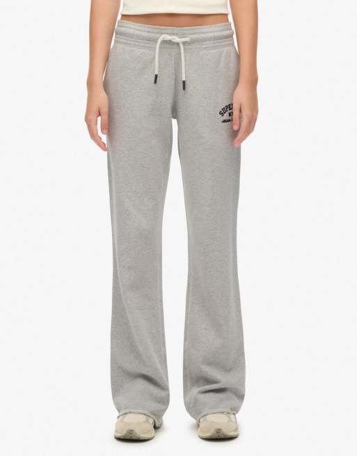 Superdry – Athletic – Ausgestellte Jogginghose in meliertem Gletschergrau mit Stickerei