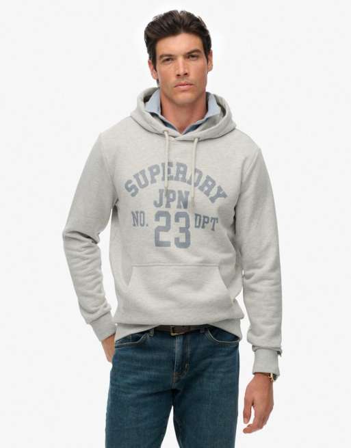 Superdry – Athletic Essentials – Kapuzenpullover in meliertem Kadettengrau