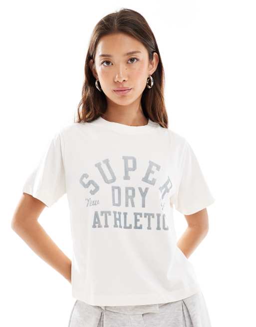 Superdry – Athletic Essentials – Locker geschnittenes T-Shirt in Wüstenknochen-Wollweiß