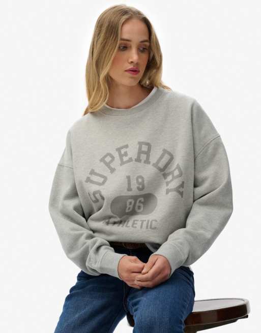 Superdry – Athletic Essentials – Relaxed-Fit-Sweatshirt in grau meliert mit Kuhfleckenmuster