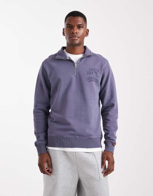 Superdry – Athletic Essentials – Sweatshirt in Steingrau mit kurzem Reißverschluss