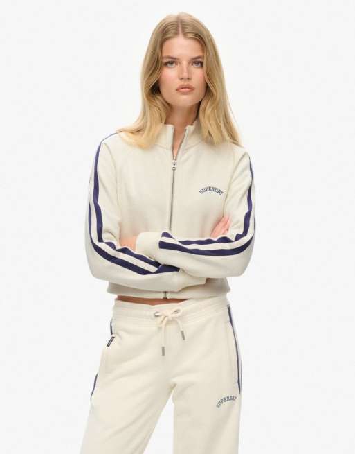 Superdry – Athletic Essentials – Trainingsjacke in Wüstenknochen-Wollweiß mit Logo
