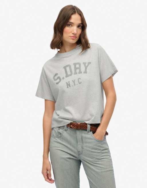 Superdry – Athletic – Locker sitzendes Basic-T-Shirt in meliertem Eisgrau