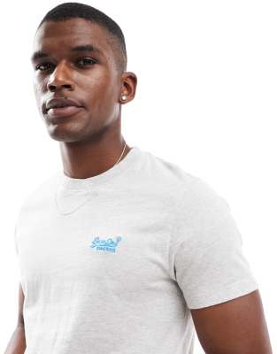 Superdry – Basic-T-Shirt aus Baumwolle in aufleuchtendem Grindle-Grau/fluoreszierendem Blau mit Logo