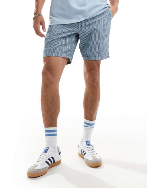 Superdry – Bermudashorts mit Streifen in verwaschenem Indigo und Kreideweiß