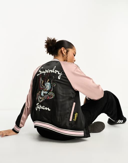 Superdry – Bestickte Suikajan-Bomberjacke in Schwarz