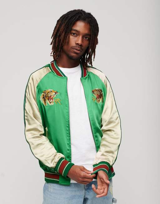 Superdry – Bestickte Sukajan-Bomberjacke in Bowling-Grün