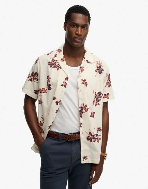 Superdry – Cabana Poolside – Kurzärmliges Hemd in Wollweiß mit Lotusblütenmuster
