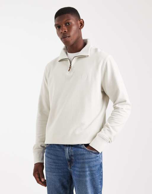 Superdry – Classic Essential – Pullover in Silver Birch mit kurzem Reißverschluss