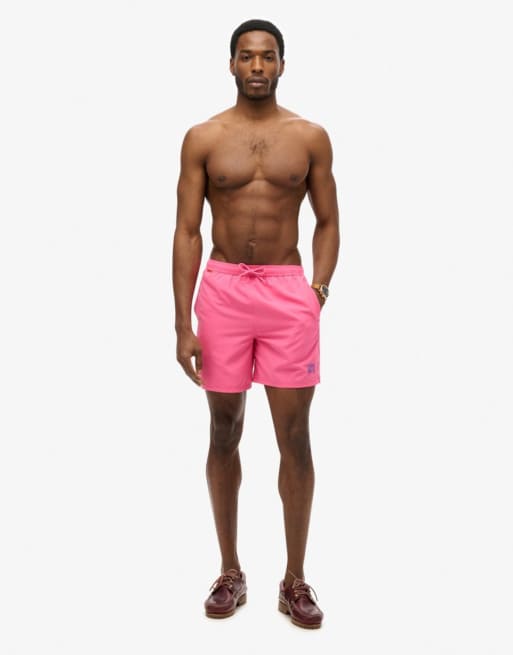 Superdry – Essential – Badeshorts in Schockrosa, 17 Zoll Schrittlänge