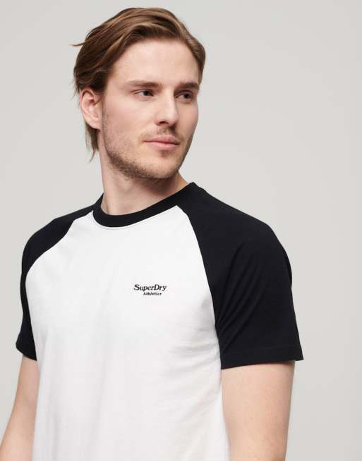 Superdry – Essential – Baseball-T-Shirt aus Baumwolle in optischem Weiß/Schwarz mit Logo