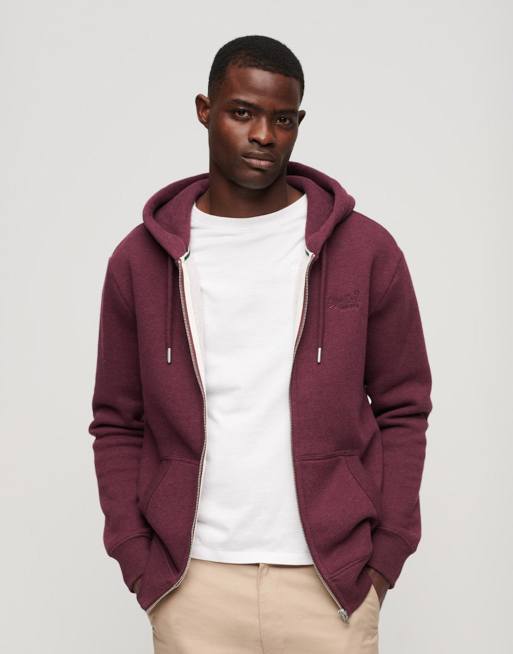 Superdry – Essential – Kapuzenjacke in meliertem Laufbahn-Burgunderrot mit Logo