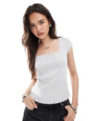Superdry – Essential – Kurzärmliges T-Shirt in Gletschergrau meliert mit quadratischem Ausschnitt