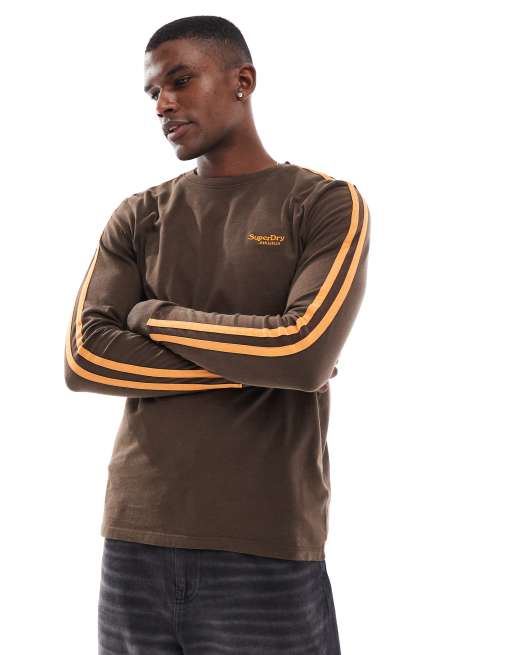 Superdry – Essential – Langärmliges Retro-Oberteil in Adlerbraun mit Logo